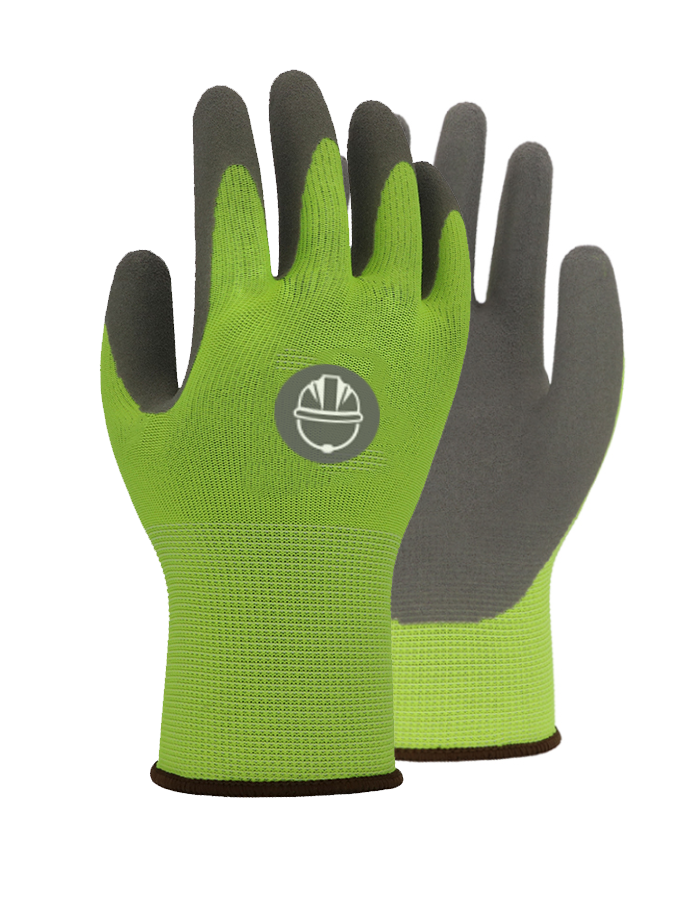 13-gauge Hi-Vis yellow polyester liner featuring grey unwashed foam latex palm-coated.