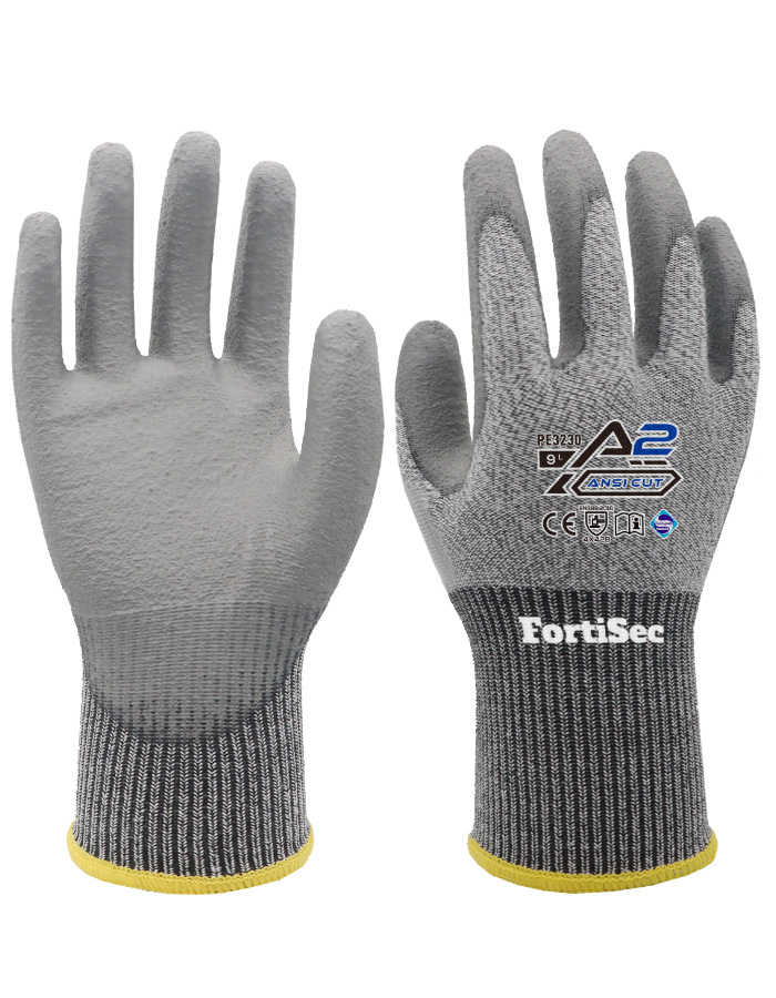 13-gauge grey HPPE/glass fiber seamless knit liner featuring grey PU palm coated.