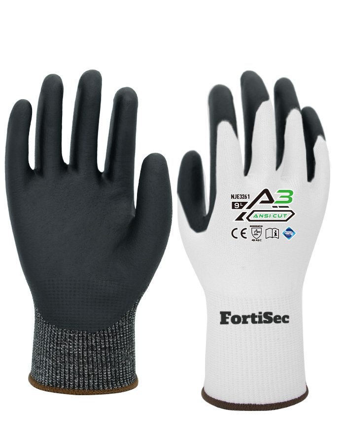 13-gauge MetalQ®/polyester/spandex seamless knit liner featuring unwashed micro foam nitrile palm coated.
